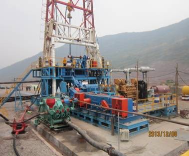 該鉆機(jī)承載部分采用了撬裝式底座平臺拼接,前臺轉(zhuǎn)盤平面高度為5.2米,后臺高度為1.5米,底座外形尺寸19580×10640。起升裝置配K型井架,其有效高度達(dá)到43米,六輪天車并配置起重修理架。JC40絞車為低位安裝全封閉式,最大輸入功率735KW,最大快繩拉力250KN,使用Φ32mm鋼絲繩。旋轉(zhuǎn)系統(tǒng)由通徑700mm的ZP-275轉(zhuǎn)盤以及SL-225的水龍頭等組成。動力部分配置了功率為588KW的PZ8V190和功率為882KW的PZ12V190B柴油機(jī),傳動系統(tǒng)為整體鏈條并車箱。配套我公司首次自主設(shè)計制造的固控循環(huán)系統(tǒng),由4個40立方的泥漿處理罐、1個40立方的泥漿儲備罐以及振動篩、除砂器等構(gòu)成。操縱控制系統(tǒng)采取氣動控制。該設(shè)備的采購及設(shè)計標(biāo)準(zhǔn)均符合API規(guī)范。