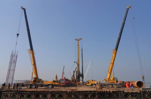 開工日期:2013年8月26日,竣工日期:2014年6月14日。寧高主橋樁基工程,施工合同任務(wù)為216-219號四個主墩,樁徑為1.8m、2.0m兩種,有效樁長為50m-73m,設(shè)計(jì)孔深62m-89m的鉆孔灌注樁共計(jì)78根,合同工作量13762m³。第二個施工合同任務(wù)為引橋樁基直徑1m的樁160根,有效樁長24-40m,直徑1.25m的樁31根,有效樁長27-35m,直徑1.6m的樁27根,有效樁長43-45m,直徑1.8m的樁33根,有效樁長30-45m?!?/span>