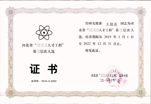 經(jīng)公司推薦,石家莊市人力資源和社會保障局組織評審,報河北省“三三三人才工程”領導小組批準、地下工程公司王德亮榮獲河北省“三三三人才工程”第三層次人選。