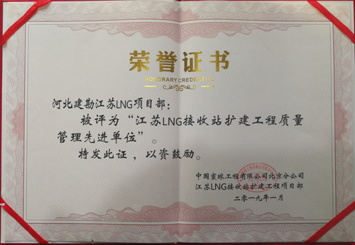 由于我公司的出色表現(xiàn),總包方中國寰球工程有限公司北京分公司對我公司和個人進(jìn)行了表彰,授予我公司“質(zhì)量管理先進(jìn)單位”和“HSE管理先進(jìn)單位”,并對周進(jìn)發(fā)、朱凱云、李友峰授予了“優(yōu)秀項(xiàng)目管理者”稱號,對賈沖、冀紫豪、任書星、李昭、張勇、張旺授予了“質(zhì)量管理先進(jìn)個人”稱號,對劉志峰、辛朝友、邢鐸、付嘉嘉、宋江來授予了“HSE管理先進(jìn)個人”稱號,分別頒發(fā)了錦旗、榮譽(yù)證書、獎牌。