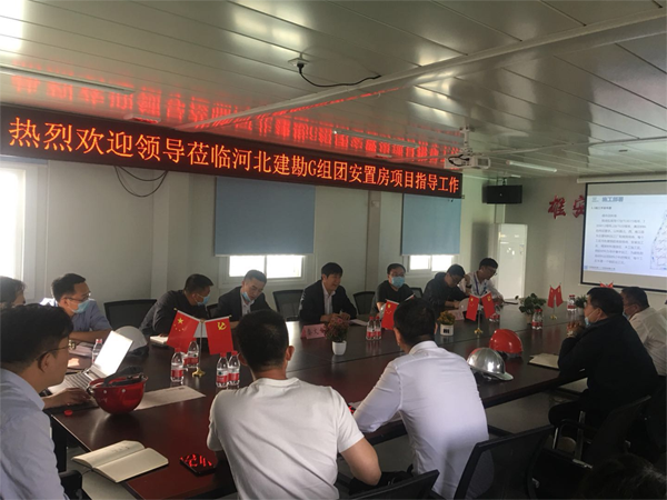 在B1組團項目部,劉中林總經(jīng)理一行聽取了項目部的工作匯報,項目經(jīng)理夏文超介紹了目前施工進展情況、下一步工作計劃、以及保證工期目標的措施。劉中林總經(jīng)理對我項目部的工作給予了充分肯定,相信河北建勘一定能干好這個項目,并贊揚夏經(jīng)理工作思路清晰、安排合理。劉中林總經(jīng)理要求,安置房項目是關(guān)系民生大計的工程,一定要確保按期完成,讓搬遷的老百姓按時入住。他還強調(diào)指出,馬上進入北方的汛期,項目部一定要做好防汛工作,確保安全度汛。城市發(fā)展投資公司總經(jīng)理秦文龍指出:施工中出現(xiàn)的各種問題一定要及時進行反饋報告,城發(fā)公司將全力解決協(xié)調(diào),全力確保項目的順利實施。
