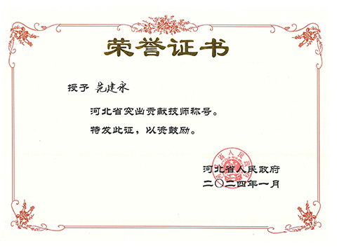 經(jīng)公司組織申報,河北省工程勘察設(shè)計咨詢協(xié)會、河北省民政廳推薦,河北省人力資源和社會保障廳組織評審,河北省人民政府決定,公司范建永同志榮獲河北省突出貢獻(xiàn)技師稱號。