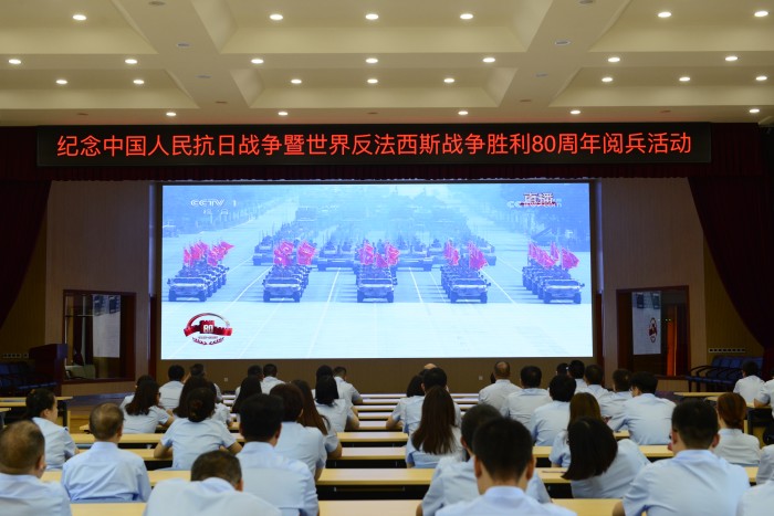 9月3日上午9時,集團公司在石家莊機關辦公樓五樓會議廳組織近150名職工集中觀看了“紀念中國人民抗日戰(zhàn)爭暨世界反法西斯戰(zhàn)爭勝利80周年大會”直播盛況。