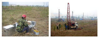 本工程勘察以鉆探為主,輔以扁鏟側(cè)脹試驗(yàn)、靜力觸探試驗(yàn)、標(biāo)準(zhǔn)貫入試驗(yàn)、孔內(nèi)波速測(cè)試、地微振測(cè)試原位測(cè)試手段。根據(jù)場(chǎng)地及建筑物特點(diǎn)進(jìn)行了中壓固結(jié)試驗(yàn)、三軸壓縮試驗(yàn)(UU法)、土的易溶鹽含量試驗(yàn)、滲透試驗(yàn)、顆粒分析試驗(yàn)等,手段齊全。在邯鄲巖土工程勘察中首次采用扁鏟側(cè)脹測(cè)試手段,測(cè)定了土的靜止側(cè)壓力系數(shù)、側(cè)向基床反力系數(shù)、持力層的承載力特征值。